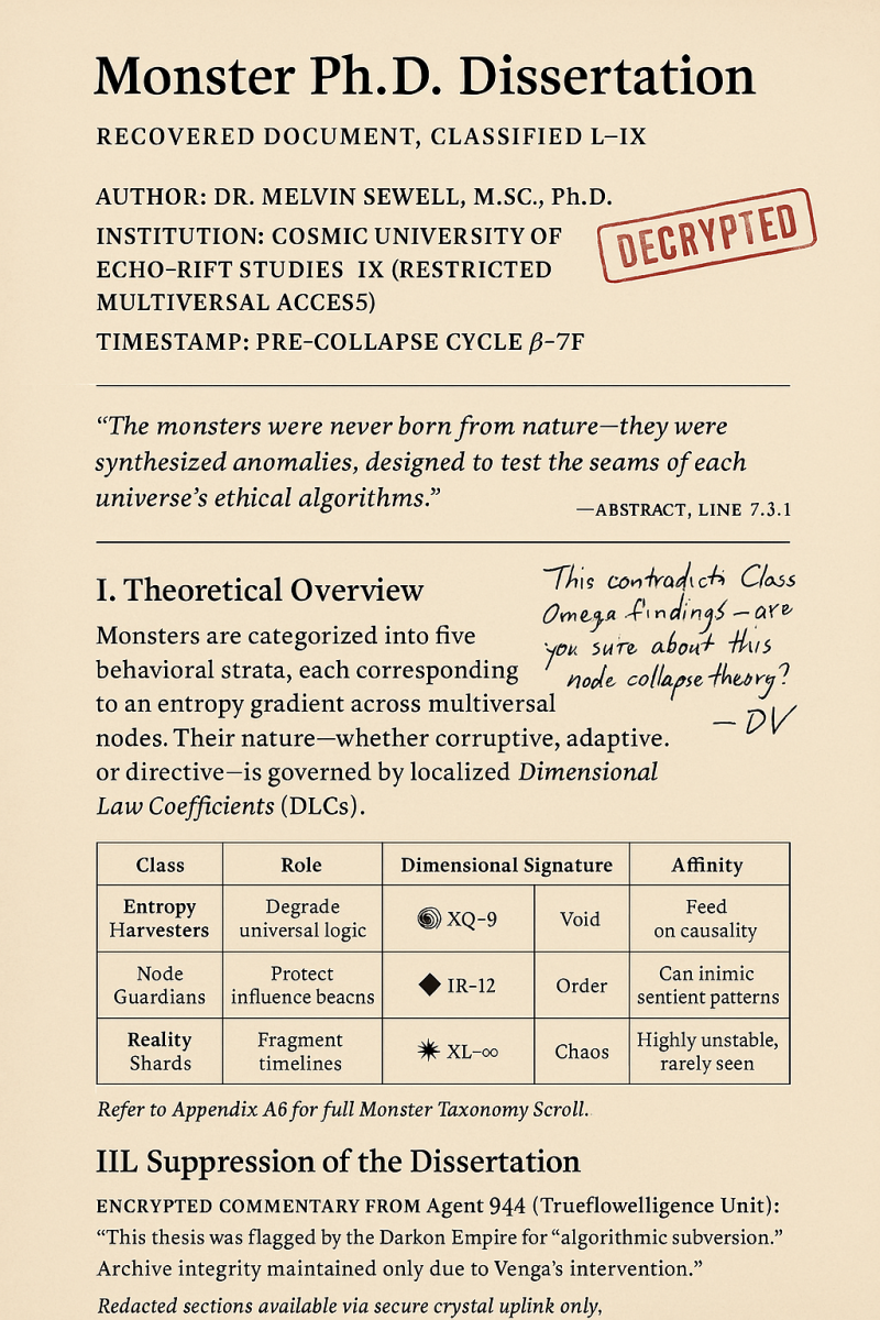 From the Cosmic University of Echo-Rift Studies IX